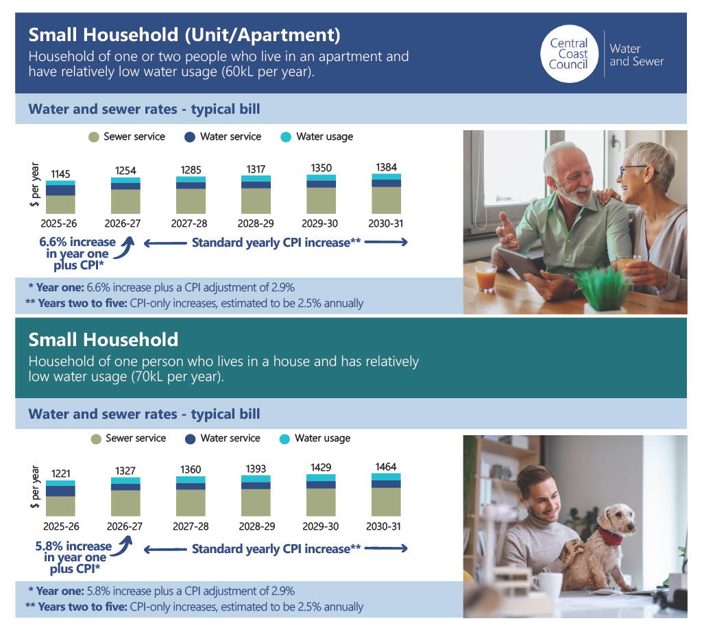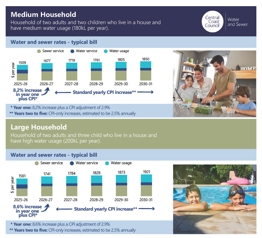 Subject to endorsement at the Council meeting of the 23 September 2025, Central Coast Council is submitting its water and sewer pricing proposal to the Independent Pricing and Regulatory Tribunal (IPART) for the 2026–2031 period.