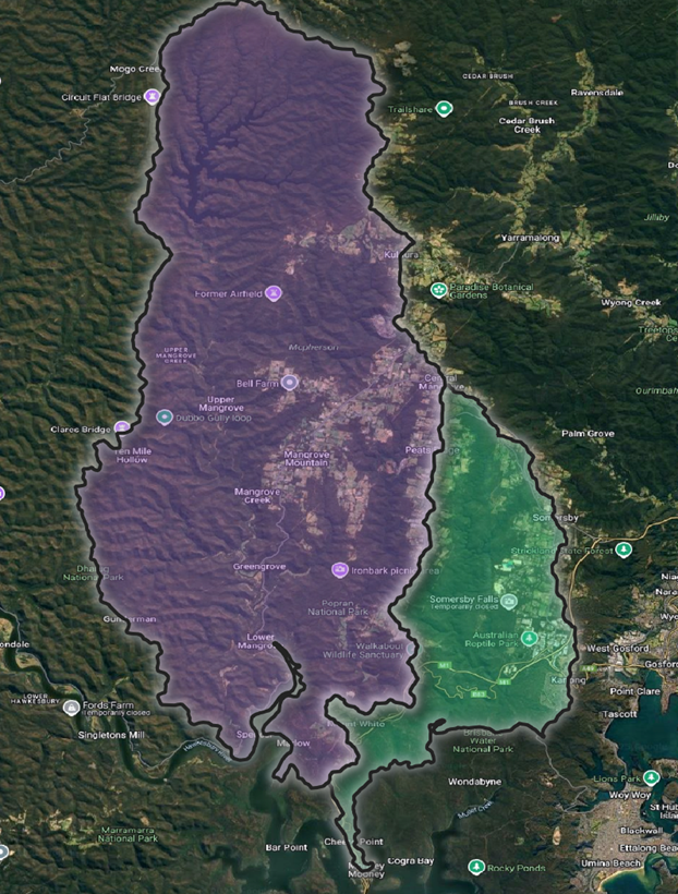Central Coast Council will engage a consultant to undertake this study which covers the area in the map below. In particular, the suburbs and rural development areas of Calga, Central Mangrove, Glenworth Valley, Greengrove, Gunderman, Kulnura, Lower Mangrove, Mangrove Creek, Mangrove Mountain, Mooney Mooney Creek, Mount White, Peats Ridge, Spencer, Ten Mile Hollow, Upper Mangrove, and Wendoree Park.