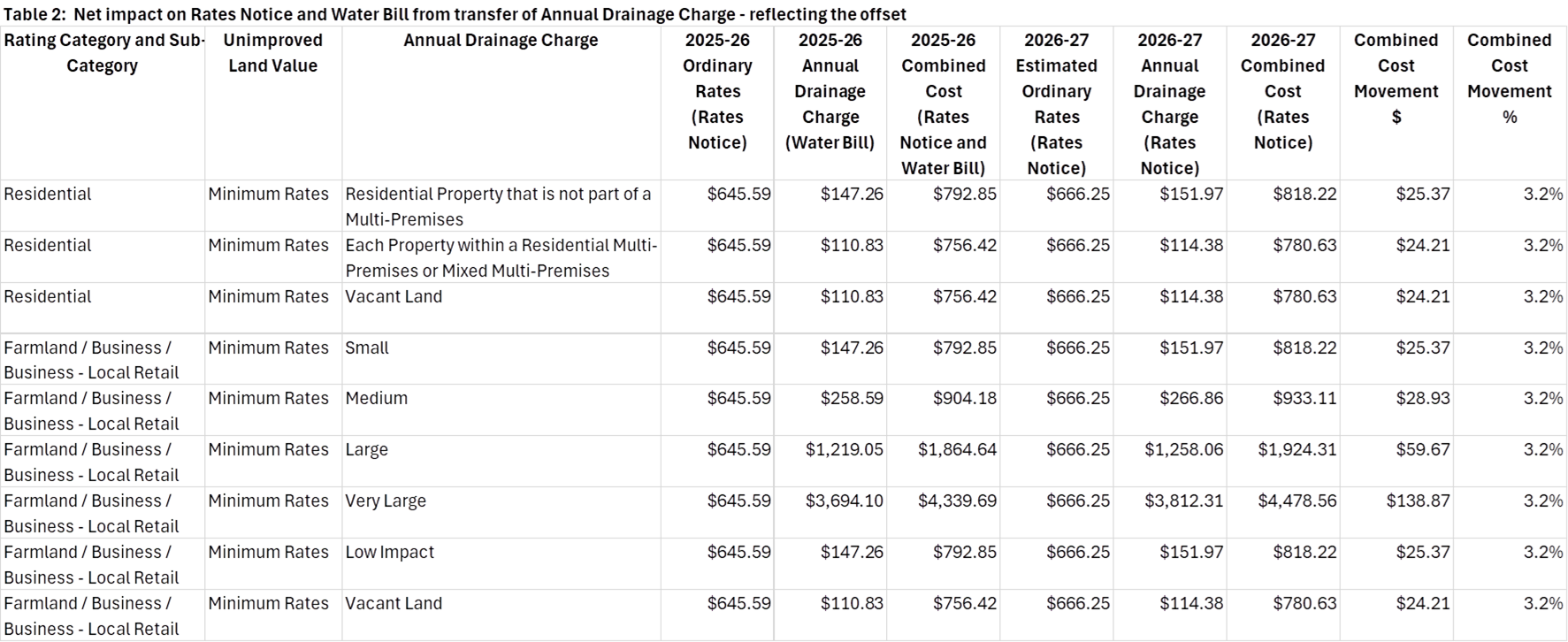 Council proposes to move the Stormwater Drainage Charge from the water bill to the rate notice. There will be no increase as a result of this transfer – you will pay the same amount as if the charge were on your water bill.